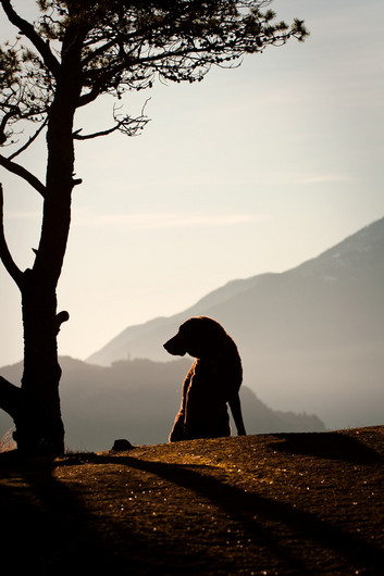 - absolutely stunning. i love the fading hills/mountains and their intersecting lines. the silhouette of tree works wonderfully with the sitting dog, and the almost monochromatic feel of this image makes it even that much more powerful. well done. a most memorable image for sure. ~illona