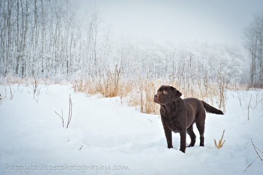 - There’s nothing like a gorgeous winter day for exploring snowy trails on the Prairies; the misty fog & hoar frost that enveloped the landscape last month created a splendid backdrop for this shot of my chocolate girl, Zoey! Taken with my Nikon D700. Minimal processing done in LR3 & Photoshop. I am thankful for this blessing, & wish to thank Illona & the I Shot It judges for the recognition. Congrats to all! For God’s Glory ~ Lesley Bailey, Manitoba, Canada, www.happytailspetphotography.com