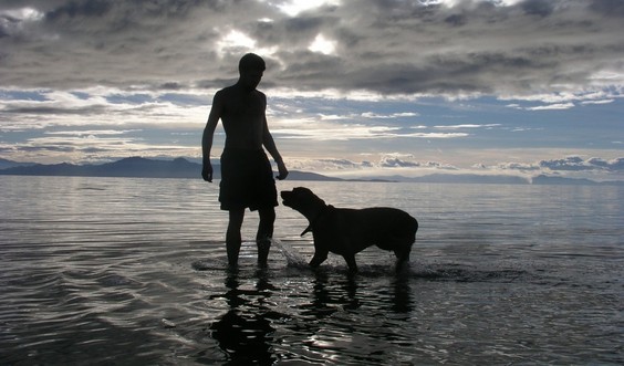 - This is such an honor, as this was my first photo entered into I Shot It. This photo was taken seven years ago with my very first digital camera, a non-SLR Olympus with manual settings that perished years ago. The brilliant sky was flawlessly mirrored in Utah's Great Salt Lake while my friend Neill and his dog Jack played on the beach. My name is Chris Holcomb. I have no home, I travel a lot for work, and I live out of my truck in the American West in between.