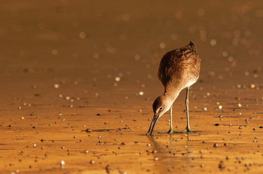 - Perfect placement in the frame makes the most of this well-captured shorebird feeding in glorious low-altitude sunlight.