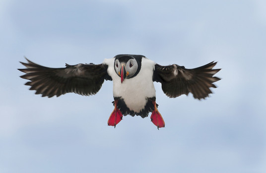 - Thank you for the award. This photo was taken on a very small Canadian island off the coast of Maine. I was only allowed on the island for two hours and I had to be in one of their blinds. I spent the better part of that time attempting to get a meaningful photo of one of the Puffins flying as I had observed their not-so-regal-almost-humorous look as they flew. My name is Jonathan Sherrill and I was using a Nikon Digital camera with a 80-200 zoom with a 2x.