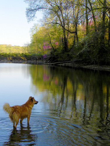 - Thanks to all who voted for "Canine Cove." I took this with my Nikon Coolpix when the redbuds were in bloom. Fredo is a a "gollie" (golden retriever-collie mix) that was rescued from the pound. He's not only photogenic, but very bright, as well. -- Kat Moore, Harriman, Tn