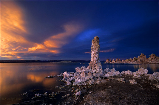 - Thank you so much for all votes! My name is Alexey Pronin; I live in San Diego. This picture was taken at Mono Lake, California. On that December 2004 evening I got lucky and the sky put up a great sunset show, providing a nice background for tufas (limestone formations). I took this photo with Maxxum 7xi camera, Minolta 35/1.8 lens and Velvia100 film. I lightened up tufas with a flash. The slide was scanned; some digital processing was done to improve contrast. My website - www.alexeypronin.com