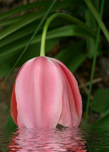 - Many thanks for all of your votes! This tulip caught my eye in 2006 because it seemed forlorn. It was taken with a Canon Digital Rebel, Canon 50mm lens, f/8, 1/100 sec, ISO 100. Flaming Pear "Flood" filter added for water effect in Photoshop 7 after slight brightening of image.
