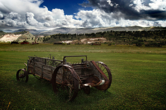 - This was photographed near Masonville Colorado, I was driving to photograph a wedding near Estes Park when I saw this collection of old farm equipment. Shot with a Canon 7D and a 17-55 is lens at about 20mm. The setting was f 5.6 at 1/300. I used layers to bring up the sky and add contrast to the wagon. Cal Landau Palm Beach Florida