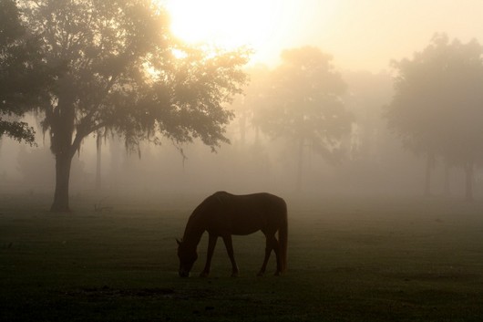 - Thank you for all the votes. I so appreciate them. I took this photo on April 3, 2012 in our front pasture in Central Florida as the sun burned off the morning fog. I used a Cannon Rebel xs with a 75-300 Cannon Lens. There was no processing done to this, the photo is as it was taken that morning.