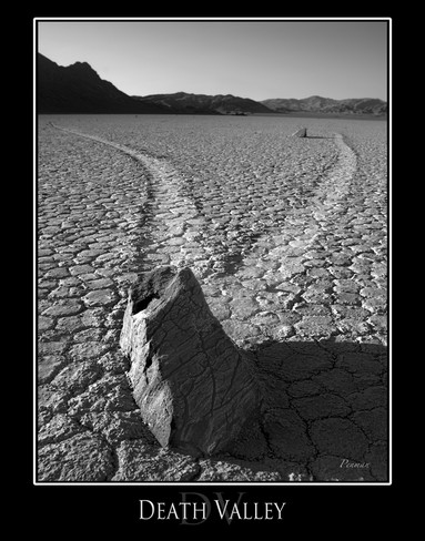 - I captured this in Death Valley National Park. I spent the better part of the day looking for a composition that was going to be different. After several hours of hunting I found this rock, which had stopped in the trail of the rock in the background. I liked how the two paths created the V that opened up into the rest of the scene, I knew I had a winner. Nikkor 18-70mm lens set at 18mm, Nikon D7000. I then combined 2 different files in PS5 to create this HDR image. Dustin Penman