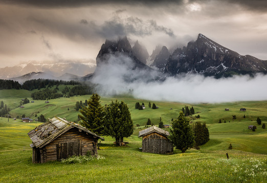 This photo was taken at Alpe di Siusi in the Italian Dolomites during a photo workshop that I led with 8 photographers. The camera is Canon 1Ds mkIII and the lens Canon 24-70 f/2.8L. No filters used and the post processing was done in Lightroom 4 from a single exposure. My name is Hans Kruse and I organize photo workshops in Italy.