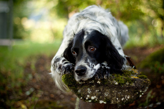 - absolutely beautiful. wonderful tone and color management. i love this dog-in-environment shot ... even though we know a spaniel would never really go up on a stump on its own to survey the landscape, we can imagine that what she is doing, truly engaging in her environment. absolutely brilliant. nicely done. ~ illona