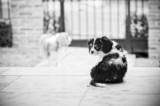 - a truly, truly striking image. there are a lot of b&w images in this particular contest, and so many of the are SO well executed ... as is this one. beautiful done! the expression of the pup is wonderful, and the framing works well. the only distraction is the blown out highlight on the top of the adult CKC Spaniel's neck. normally i'm NOT a stickler about blown out highlights at all ... but in this case it really stands out. i'm wondering if it can be recaptured in the raw version? but it's a great, evocative image. a definite fave. well done! ~ illona
