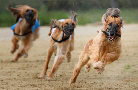 - I shot this with a Canon EOS 7D on a sighthound racing track in Germany. In Germany sighthound races are non-commercial, so you'll find family dogs running there for fun. These three Afghans were a happy shot really. Your camera has to be really fast and it's hard to compose a shot. So I was lucky to have these three aligned in such a way. My name is Elke Vogelsang.