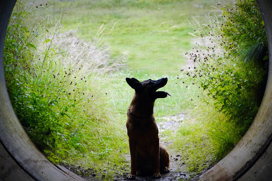 - i always say that when an image works both large and small, that is the mark of a strong image, and this is one of those cases. very nicely done. i think the only thing i'd love more is if we saw a hint of the bottom of the culvert(?) ... that way there wouldn't be quite as much 'tension at the bottom of the frame with the very limited space between the dog's paws and the bottom of the frame. otherwise, a wonderfully executed image. well done. ~ illona
