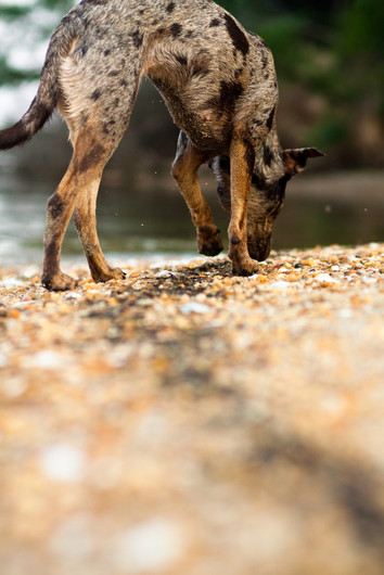 - love the tones and color management in this, as well as the shallow dof. the drops of water/sand coming off of the dog make us feel as though we are right there, and the variety of textures keep the viewer coming back for more. beautiful framing. well executed. nicely done! ~ illona
