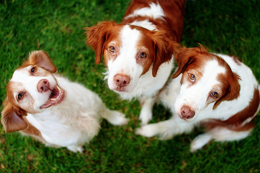 - okay i must be a sucker for Brittanies. this image rocks my world ... and i know getting one dog, or two dogs, much less THREE dogs to look up all at once is not always the easiest feat (although sometimes, with the right pack, it's a breeze). well done, BEAUTIFUL color management, and wonderful depth of field. ~ illona