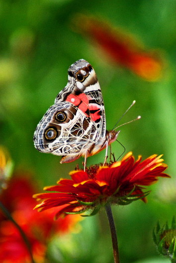 - Thank you to everyone who voted for me it means a lot coming from such a community as this. My name is Kevin Blair, I shot this Painted Lady as it was feeding on an Indian Paintbrush in Bristow, Oklahoma. I used a Nikon D40x with a Tamron 70 - 300mm lens. I put the camera on Shutter Priority and kept playing around with the shutter speed until I got what I wanted. As far as post processing goes. I used Photoshop Elements 5.0 played with the contrast and brightened it up until it looked right.
