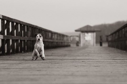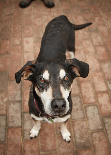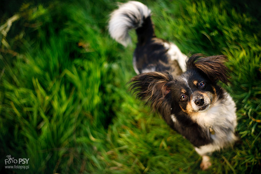 - This is Kropka (english: Dotty) staring at you in this picture. She is a tiny, 5kg in weigh, dog, which was looking for a home not so long ago. During my free time I try to help such dogs in finding a home by taking good pictures for their advertising. Interesting, eye-catching photo is a deciding factor in getting attention for a dog adoption advertising. Before I took the photos of her, she has been waiting for 2 months already - with no attention at all. After publishing those photos, telephones went haywire. After just one week, her caretaker chose the best home. It's a wonderful feeling when you successfully help a dog to find a new, loving family. Therefore I encourage everyone who likes to take photos of dogs to do the same. Equipment used: Canon EOS 1D Mark II + Canon EF 50m f1.8 Mark I.