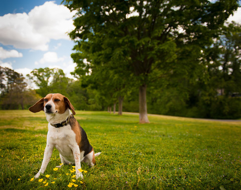 - there's something so pure about this image ... a beagle sitting in a park with buttercups under a perfect sky. just too cute. nicely captured, and managed all around. thanks for sharing! ~ illona