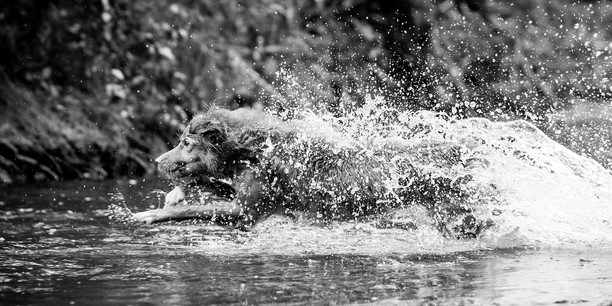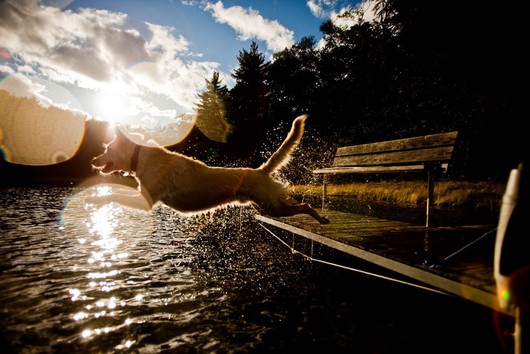 - while there are certainly some technical issues with this image (the focus farther back instead of on the dog), it still exudes the joy most dogs have for water and an exuberance for diving. i would have perhaps cropped out the object in the foreground in the far right of frame as it is somewhat distracting, or rather framed the overall image more to the left to give the dog more space to dive into ... at the same time, i fully understand that these captured moments often have very little time for careful and concentrated composition. all in all, an uplifting and memorable capture. ~ illona