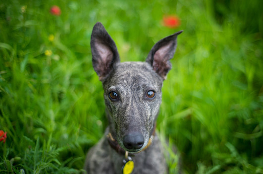 - The dog in the photo is Dazzle, a 10.5 year old retired racing Greyhound. Shot with a Nikon D7000, post-processed in Lightroom and Photoshop. Photographer: Rachel Hogue of Memphis, TN