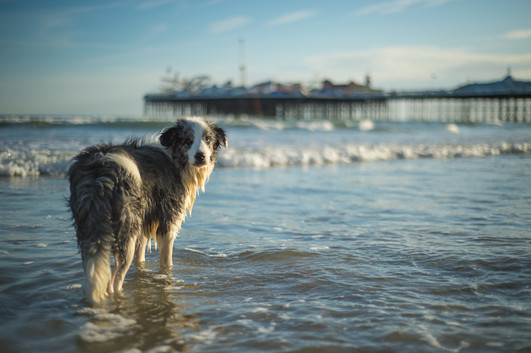- This is Django, a lively Blue Merle Collie, not yet a year old, enjoying Brighton beach, UK. The tide was low so there was lots of shallow water to run through and he was loving it. At this point he had paused to turn round to see why I hadn't thrown his stick. A split second later he bounded over to see why not! This was taken with a Nikon D4.