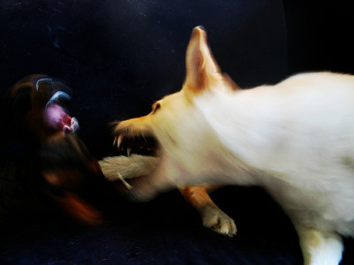 - Thank you :) I'm Cassandra, this shot was taken a few years ago in Seattle with a canon powershot G5. My dogs used to wrestle all the time and so it gave me lots of opportunities to capture the moment. the leg in the middle belongs to the shepherd ;)