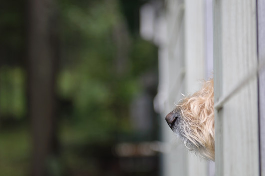 - another fave. the simplicity of this image, yet the variety of textures -- the soft bokeh, curly hair, and straight wooden pickets -- make for a rich yet simple composition, and all tell a story that is too well known to dog owners -- the curiosity of canines. beautifully shot and presented. well done! ~ illona