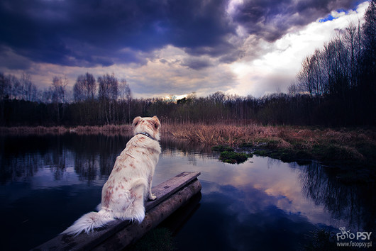 - Thanks for appreciating my photo. :) It depicts my dog Piegus (english: Freckly), which I adopted from shelter 5 years ago. One of our favourite activity after tiring walks is... observing. We just sit on the grass, most preferably on a hill and observe, relax ourselves... On that particular day we sat next to a pond and listened bird's talking. Freckly got interested in something that was moving through the scrub - he sat and observed... and I took that picture. Every time I look at it, I'm relaxing just like on that other day. Equipment used: Canon EOS 1D Mark II + Canon EF 17-40mm f4.0 L. My name is Aleksandra Sypniewska, I'm from Poland, Europe - be sure to visit my website: