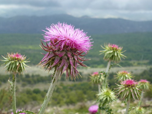 - Thank you so much for choosing my photo -- my first win! My name is Tracy Davis and I live in the southwest of the United States. Thistle is a family name, so I love photographing these unusual flowers when I can find them. This photo was taken with a point-and-shoot Panasonic Lumix camera while I was hiking through southern Croatia this last summer. I love this photo for the contrasting moods it shows with the dark skies in the background and the bright pink flowers front and center.