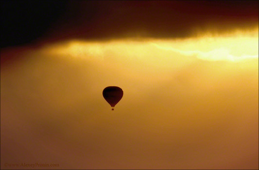- Thank you for the votes! I am Alexey Pronin, live in Miami, Florida. One evening in 2007 I was on my deck in San Diego and saw hot air balloons flying near the horizon as the sun was setting behind clouds. I zoomed in onto one of the balloons using a 100-400/4-5.6 Minolta telephoto lens and grabbed a picture . The pictures was taken with Sony A100 DSLR camera. Some light processing was done using Photoshop CS5 to improve contrast. You are welcome to visit my website for more images.