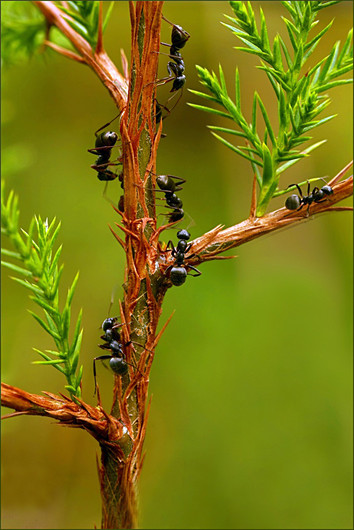 - A beautiful macro wild life shot. The ants are so well portrayed in their busy business, one can tell that there are so many more out of shot. The branch has been pleasingly framed and the ants seem perfectly placed upon it to balance the photo nicely. I suspect the photographer has more of these!