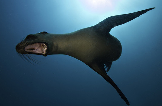 - A clever, nicely composed, rather fierce shot of a sea lion in underwater action which shows us the power and grace of this intelligent sea predator. Well done for the photo and also for keeping your cool!