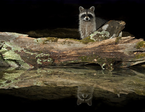 - I took this shot while on the Images for Conservation Pro Tour in 2006. I set it up with an infra-red trigger and two flashes. The photo was taken at 2:00 am. When the first flash fired, the raccoon curiously looked up; this is the second shot. John Hendrickson