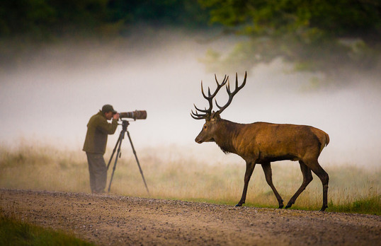 - Well there is so much here! Either there are so many deer around that the photographer in the picture can afford to let this one just wander by… or else he is so absorbed in the world inside his long lens that he doesn’t see it. Where I live it is very rare to see a deer close by without hiding, or stalking, they are very timid. Here it seems very tolerant of man’s visible presence, and vice-versa!. This is certainly the most entertaining of the submissions and I love the misty forest, wild atmosphere. It is a well spotted man and nature shot, well done!