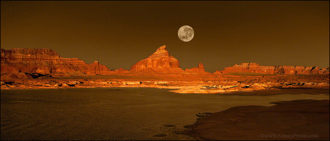 - Thank you for your votes! I am Alexey Pronin, live in Miami, Florida. In May of 2011 I attended a tour exploring Lake Powell, Utah (http://www.dynamicphotoworkshops.com). This scene was photographed at sunset in Labyrinth Bay. I took this picture with a Sony A850 DSLR camera and an 24/2.8 Minolta lens. Later I decided to give this photo a vintage "Wild West" look using a sepia filter in Photoshop CS5; only the color of rocks was left natural. You can visit my website for more images.