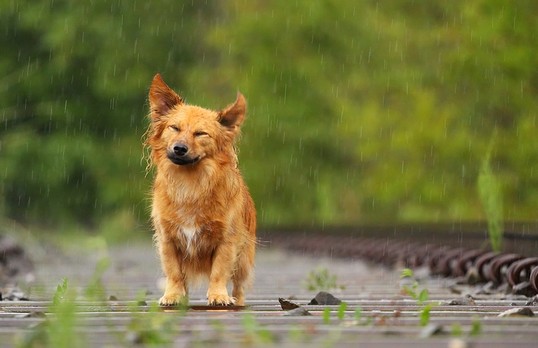 - what a lovely, fun image ... made instantly memorable by the dog's expression in the falling rain. expertly captured and managed in post. a definite fave. ~ illona