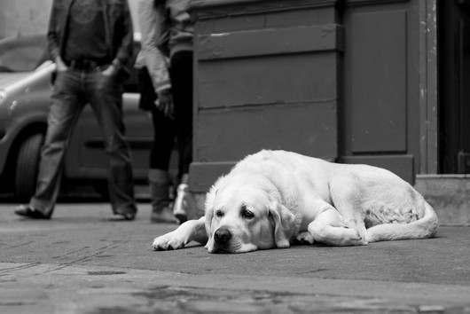 - this image is made dynamic through the dog's captured expression. wonderful framing and color management, and great use of depth of field. wonderfully done. ~ illona