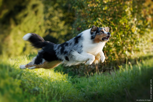 - My name is Johnny Krüger an I am a animal and pet photographer from Germany. This is a pic of Spike, an Australian Shepherd dog in action. The equipment I used here was a Canon EOS 1D mk3 with a Canon EF 70-200 L 2.8 lens, for post processing i use Photoshop CS4.