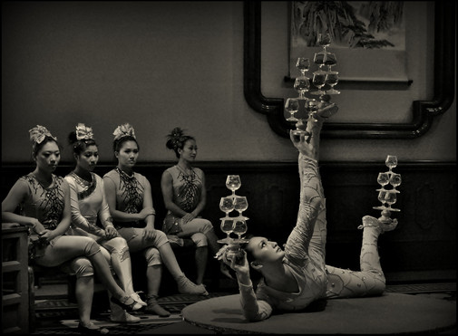 - Elizabeth Yureklier DiRosa China @ Epcot - Chinese acrobats- no post processing..While on shoot that focused solely on monochrom imagery to learn my néw cameras censors -- I went to one of my favorite locations and found these beautiful girls from China that had more drama going on in the back ground then the performance it-self.Thank you so very much for honor in your most demanding completion,