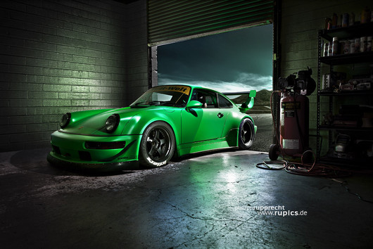 - I took this photo at the RWB headquarter in San Francisco. The wall is completeley rebuilt in photoshop, the landscape outside is also composed. I lit the car and location with several Elinchrom Ranger Quadras. Check out my website to see more photos of this set: www.rupics.de Behind the scenes photos on my facebook page: https://www.facebook.com/rupics.photography