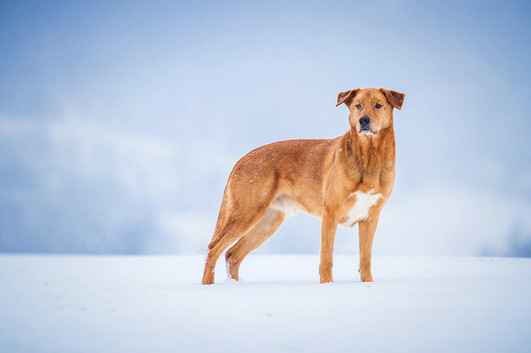 - what a gorgeous shot ... the simplicity of the landscape allows this truly handsome dog to stand out. absolutely brilliant color control and a wonderful contrast between the pale blues and the strong oranges. a truly memorable shot. nicely done. ~ illona