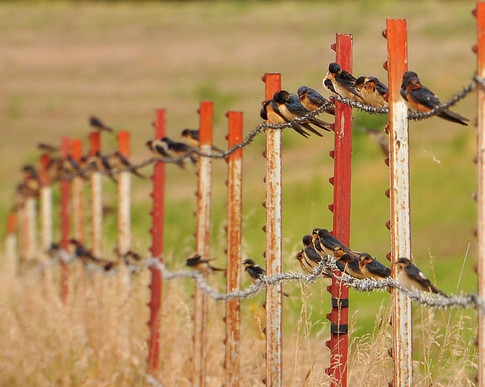 - The lines of the fence lead the eye off into the defocused distance, giving depth to the image and emphasizing the number of Swallows gathering.