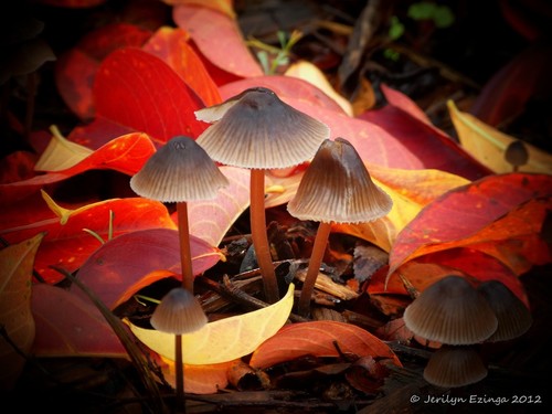 - Wow....thank you so much for choosing my photo! I initally was taking pictures of fall leaves under a tree, but as soon as I got up up close, I saw all these little mushrooms everywhere (I swear it looked like a little fairy village). I spent alot of time under that tree and was just amazed at the simple beauty before me. I shot this using the macro setting on my Panasonic FZ150. I hope you enjoyed it - Jerilyn from San Rafael, CA.