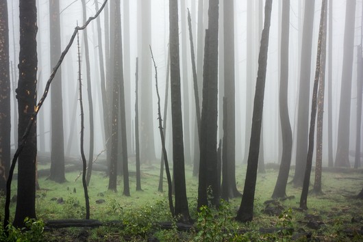 - Beautiful lines and soft colours, as nature repairs the damage. This is not just a beautiful picture in the visual sense, it is also, I think, a story of destruction and of revival and a tremendous picture of hope. One can feel the damp of this leafless forest. Are those woodpecker marks on the dead trees? Did the whole forest burn? In any case congratulations for this powerful photograph.