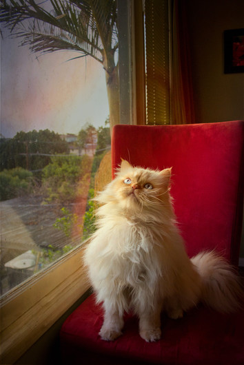 - Thank you so much! I am pleased to be recognized with these fantastic photos. My name is Jolyne L. Harris, I live in Southern California. This our family cat Teddy; very often the subject of my photos, as he tends to be rather good-natured and compliant. I shot this in the early evening as the sun was setting, with my Canon 7d. A bit of post processing to increase clarity and color and allow the reflections in the window glass to take on a more rainbow appearance. Thank you for taking notice!