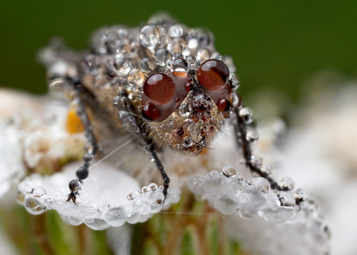- First I have to say that I'm humble and proud that you liked my picture. It's really inspiring. Thank you so much for this honor :-) I also have to say that you have a magnificent web-site, a great source of inspiration. My name is Audun Wigen, and I live in Norway. I shot this photo just outside my bedroom window. I spotted this fly when I was out for the morning newspaper. It was sitting on this small white flower, covered with moist, not able to fly. Two hours after I shot this picture I went outside to look for the fly again. It was sitting on the same flower, still not able to fly. I used Canon 5d MK-II with MP-E 65mm. I used a ring-flash on the lens, and a 580ex flash mounted on a home-made bracket to give light from above. A home made difusser (made from an ice-box) was mounted on the 580 flash. My native language is norwegian, so my home page is not in english - sorry. But I'm working on a english version, so check back in a couple of days :-)