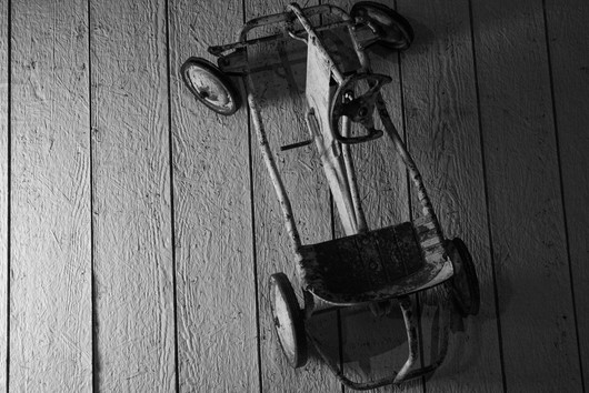 - Thank you, Tim! Congratulations to all! My name is Aaron Wilson, I live in Austin, TX and am very honored to receive a mark of excellence. I was at a small club on the East side shooting for my friend's band. In between sets, I stepped outside for some air and found this amazing 50's era pedal car hanging on the wall above the doorway. I loved the lighting and textures and wanted to create the illusion that the car was on the floor being photographed from above. I agree the framing is tight on top an bottom, but felt it was necessary to maintain the illusion. For me, the crop also adds an uneasiness of the atomic age to the image and juxtaposed with the child's toy to great effect. I imagined my father as a boy, abandoning his favorite toy to follow his mother down into the bomb shelter. Shot with an Olympus EM-5, m.zuiko [email protected] 1/90 ISO3200. Lightroom4 BW conversion with minor exposure/contrast/clarity adjustments.