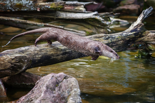 - A very well captured diving otter. This is a great action shot, no doubt the result of a long wait. The otter’s face and body are mostly sharp whereas its tail, its hind legs and the rest of this scene are slightly blurred by the panning movement of the camera and a relatively slow shutter speed; a very bold and technical approach considering the rarity of the moment. I love the water coming off the end of the otter’s tail and the natural cold tones. Well done, this is a great shot and the worthy winner of this round.