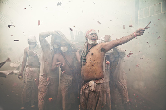 - Hazy light and floating elements in the air suggest to the audience, that there was an outburst of celebration. Powerful expressions of the people involved make the observer feel involved.