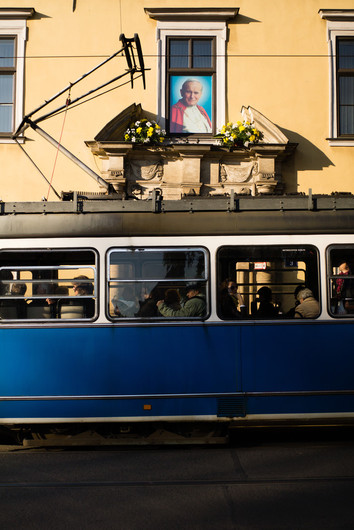 - Thanks for considering this photo for the "Mark of Excellence". I am so proud! I took the photo during a trip to Kraków, Poland. It displays the so-called Pope Window, where the late Pope John Paul II appeared during his visits to his home city Kraków. It is a well-known spot in Kraków and I wanted an unusual photo, so I made my friends wait until a street car passed. I liked the color combination of the blue car against the yellow wall. It also puts the "shrine" in the window into an everyday and worldly setting. It was taken with a Sony Nex-7 and a Zeiss Biogon f2.8 ZM lens.