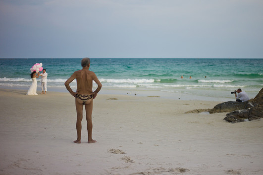 - What a wonderful surprise! I hesitated a long time before posting this photo. I was not sure but at the same time it always came back to haunt me. It is the first time I win a prize for one of my photos so it is great to be recognized by professionals. I was lounging on a beach in Thailand when I saw the Russian couple being photographed with great hype (more than 15 people around them). When they moved to the waves in front of my seat my Leica M9 was ready. I took a few shots until I saw the gentleman. I immediately visualised the photo and ran behind him to shoot. Lens was 35mm Summilux at 1.4 and 1/1000s with ND filter. Minimal post processing and some cropping on Lightroom. Thanks again for this nice summer gift! Younes Kabbaj Hong Kong